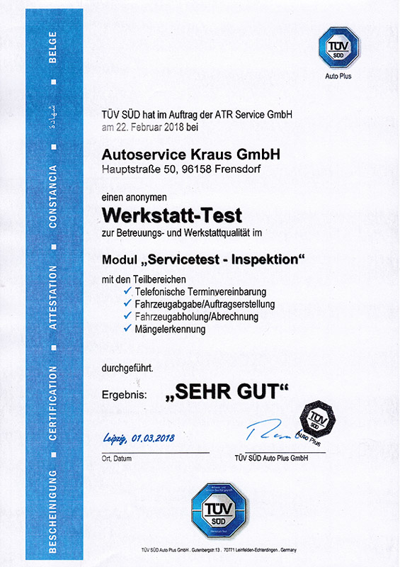 dann sollten Sie die KFZ-Werkstatt Andreas Kraus besuchen.